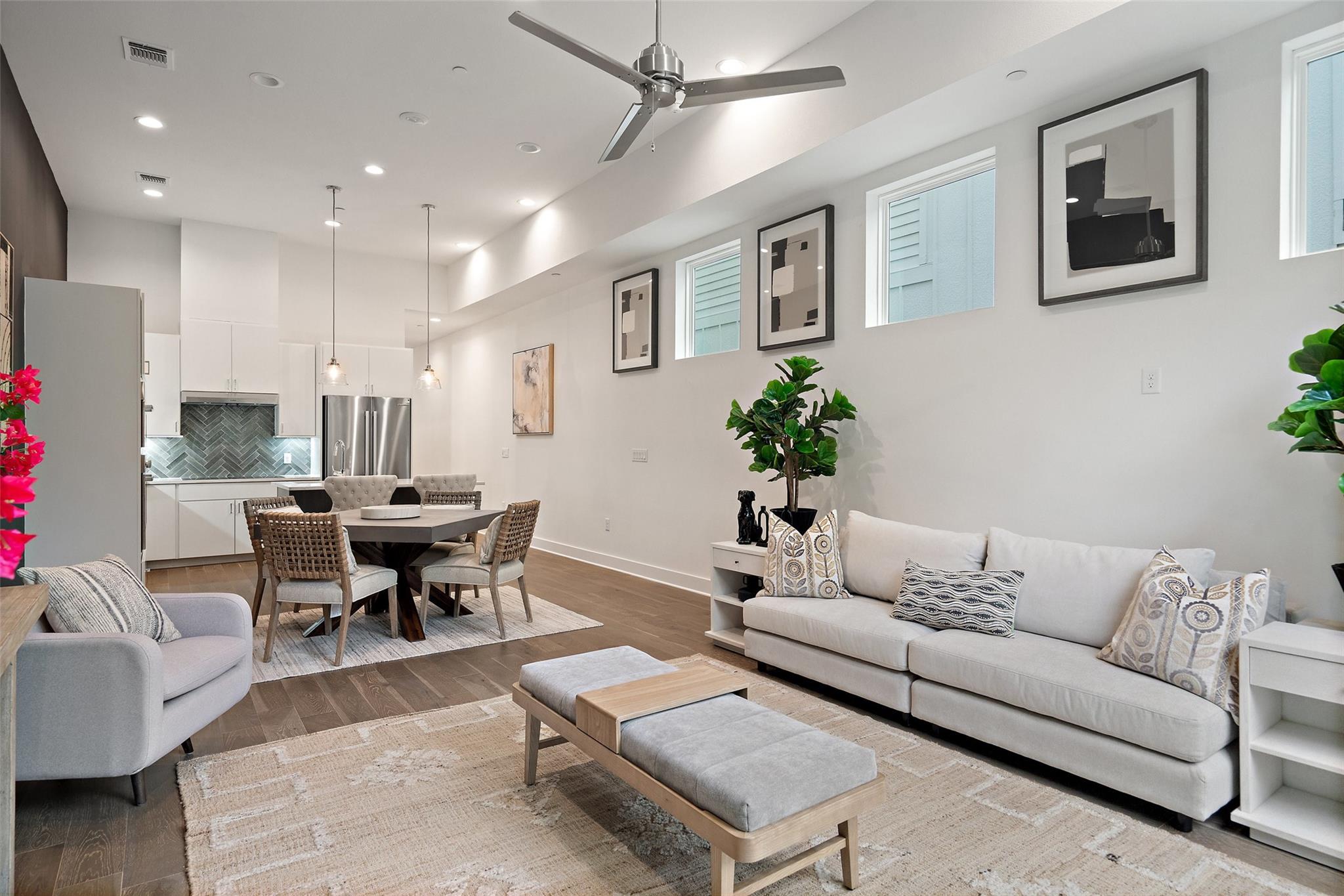 ASK ABOUT OUR FALL PROMO - FLEX CASH TO BUYERS, 2% of SALES PRICE!!! PRIME LOCATION!!! 2 BED, 2.5 BATH, 1,788 SF, TWO STORY TOWNHOME IN THE HEART OF VIBRANT SOUTH LAMAR. FIRST FLOOR LIVING, LIGHT AND BRIGHT CORNER UNIT. New construction, just completed. This home is a hidden gem, tucked away in a small private 18 unit gated community on Bluebonnet Lane. Enjoy the walkability of this convenient location - cool cafes, restaurants, bars, parks, theaters, green spaces, and artistic experiences are minutes from your doorstep. Less than 2 miles to Downtown, Lady Bird Lake, Zilker Park, and easy access to Hwy 290, 360, and Mopac. There's nothing like this home on the market...Spacious open concept floor plan that lives like a single- family home. High-end interior finishes - hardwood floors throughout, 12 foot ceilings, 8 ft doors, recessed lighting, 1 car garage plus 1 additional parking spot, and a fenced backyard. The kitchen is equipped with a breakfast bar, quartz countertops, BOSCH appliances, and upgraded soft-close cabinetry. Upstairs, the bright owners retreat is inviting with an ensuite bath with a large oversized walk-in shower with two showerheads, double vanity, large walk in closet. The secondary bedroom is huge like a second master, and has an ensuite bathroom. Laundry room is on the same floor as bedrooms for convenience. Experience indoor-outdoor living with 10 foot stackable sliding doors leading to a small yard and backing to mature trees. We also have a dog park for your furry best friend. HOA covers exterior maintenance, exterior insurance & landscaping of the yard. New home warranty included. WASHER/DRYER INCLUDED FOR HOMES THAT CAN CLOSE IN MARCH. ASK ABOUT SPECIAL FINANCING.